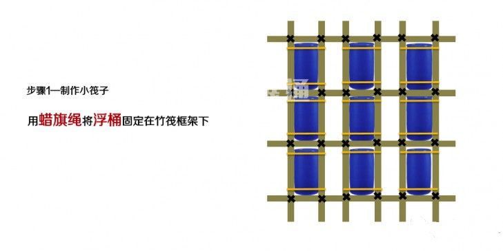 参训的团队要利用若干汽油桶、竹竿和绳索等材料扎成一个漂流筏,在制成的漂流竹筏质量合格的情况下,队员们穿上救生衣,让团队成员(不少于半数的队员)搭乘漂流筏,划动船桨使制成的漂流筏在水面上运行,团队成员在最短时间内安全抵达对岸的终点者为获胜队。